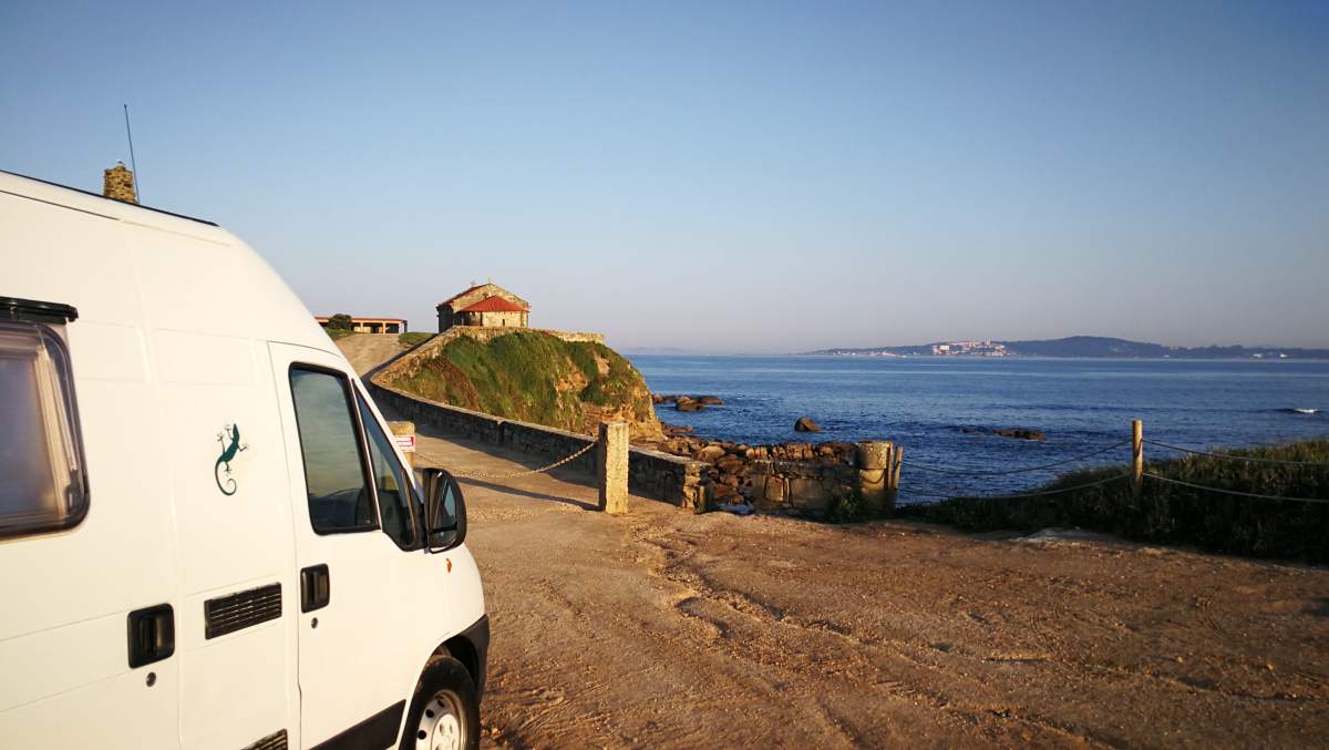 Las playas cercanas, Pragueira al norte y Montalvo al sur, cuentan ambas con campings, como este de la playa de Pragueira que tiene buenas reseñas. De todas formas, una opción interesante en esta misma playa de Pragueiras es su aparcamiento, nivelado y muy cerca de Bascuas, a la que se puede acceder por un corto sendero litoral. Otra posibilidad muy interesante es dormir al lado de la ermita y el castro de A Lanzada, en el aparcamiento de acceso. También sin servicios, me temo.