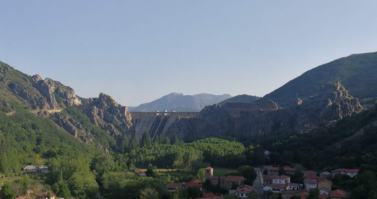 —¿Dónde? No veo nada... —Lo que distingo al fondo es la presa de Barrios de Luna, flanqueada a ambos lados por un abrupto afloramiento rocoso muy escarpado.
